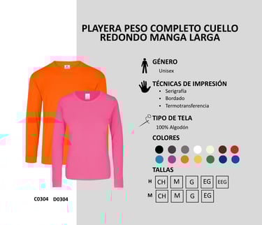 Playera Peso Completo Cuello Redondo Manga Larga para Caballero