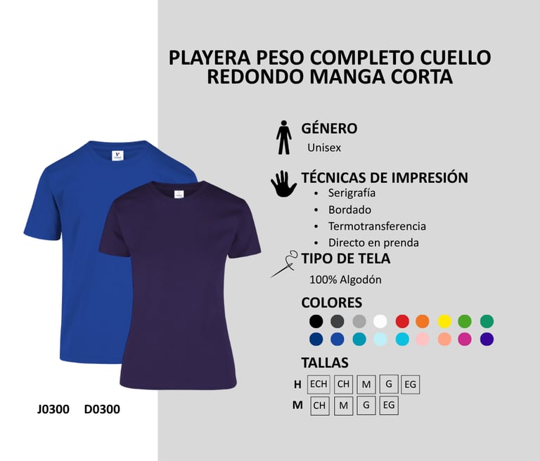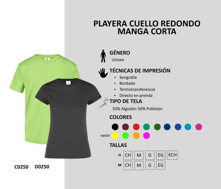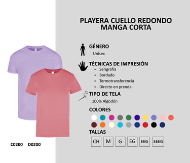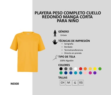 Playera Peso Completo Cuello Redondo Manga Corta para Jóvenes 195 gr/m2