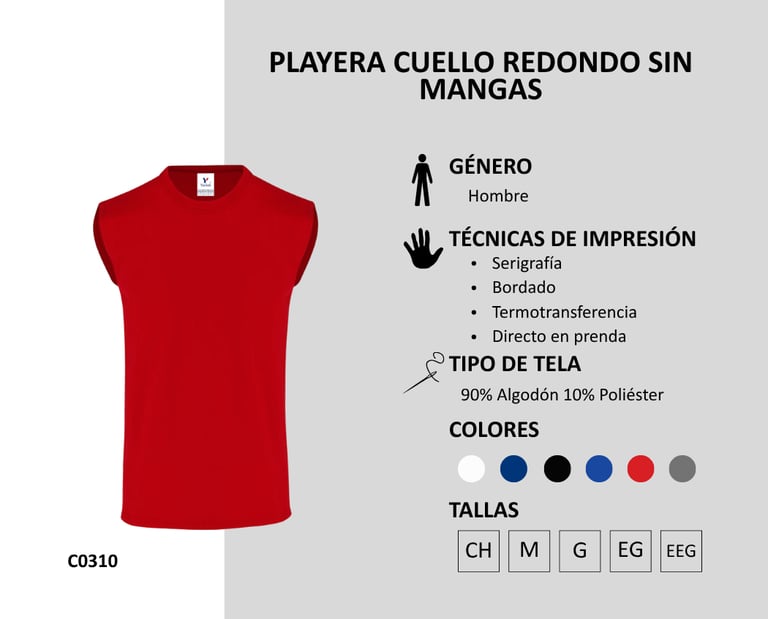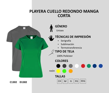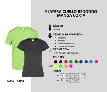 Playera Cuello Redondo Manga Corta para Caballero 150 gr/m2
