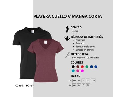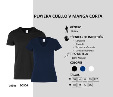 Playera Cuello V Manga Corta para Caballero 155 gr/m2