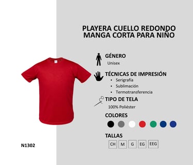 Playera Cuello Redondo Manga Corta para Niños 150 gr/m2