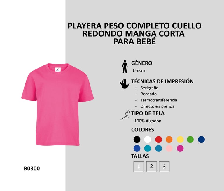 Playera Peso Completo Cuello Redondo Manga Corta para Bebés 195 gr/m2
