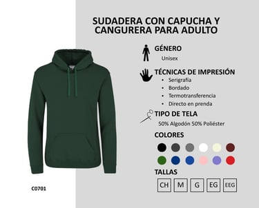 Sudadera con Capucha y Cangurera para Adultos 275 gr/m2