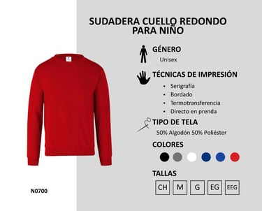 Sudadera Cuello Redondo para Niños 275 gr/m2