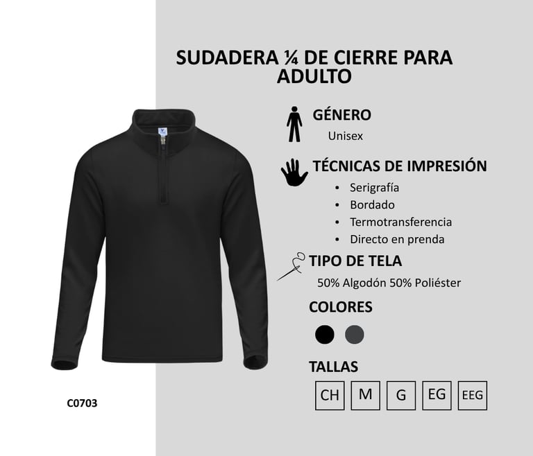 Sudadera 1/4 de Cierre para Adultos 275 gr/m2